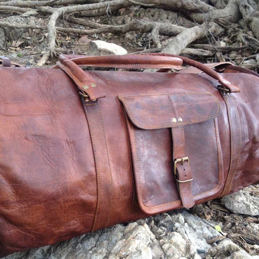 Handmade Leather overnight bag 100% genuine leather bag with durable inner canvas lining and antique look accessories, Well suited to carry I PAD's, books, notebooks and other personal belongings etc.