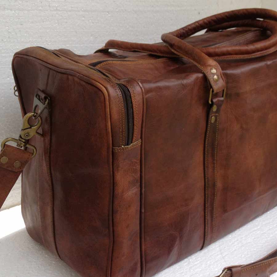 Handmade Leather duffel bag 100% genuine leather bag with durable inner canvas lining and antique look accessories, Well suited to carry I PAD's, books, notebooks and other personal belongings etc.