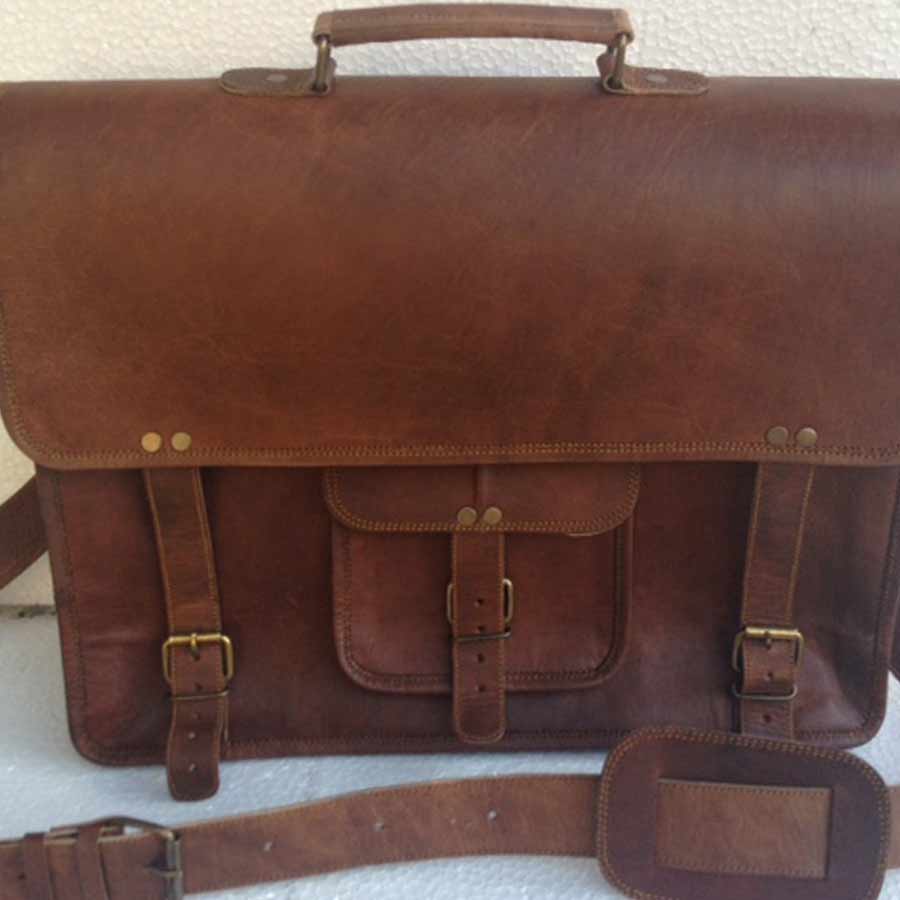 Handmade Leather messenger bag 100% genuine leather bag with durable inner canvas lining and antique look accessories, Well suited to carry laptop's, office files, MacBook, college files, mini laptop's, I PAD's, books, notebooks and other personal belongings etc. Genuine handmade product made from chemical and dye free leather.
